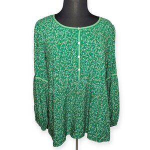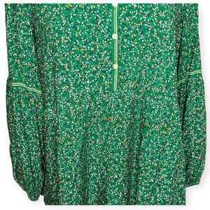 Max Studio Green Floral Peasant Bohemian Blouse Tunic Top Womens Size 1X NWT