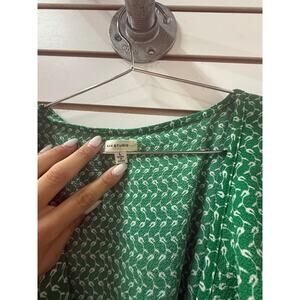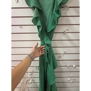 Max Studio Green Printed Asymmetric Midi Wrap Dress Ruffle Detail Size Large