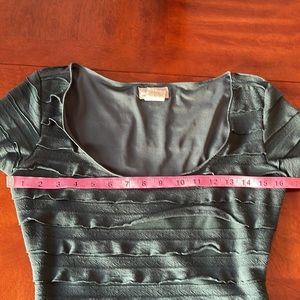 Max Studio Fitted Short Sleeve Ruffle Dress. Fully lined. Green/teal color. Size Small. Good condition. No holes or stains. Some piling throughout. Soft and has some stretch.