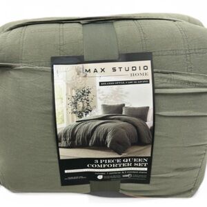 Max Studio Home Green Stone Washed Queen Comforter Set 90”x90”