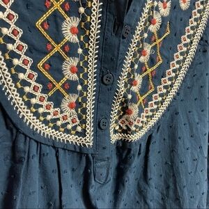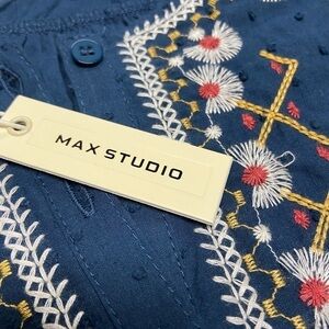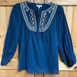 Max Studio Indigo Blue Boho Embroidered Peasant Flowy Blouse, XS