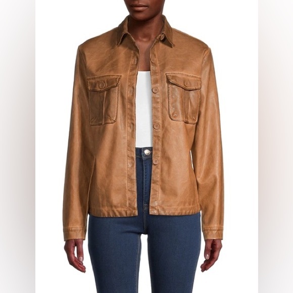 WOMEN'S FAUX LEATHER JACKET IN COGNAC