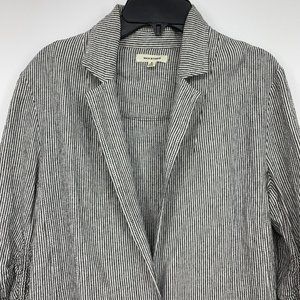 Max Studio Jacket Stripe Linen Blend Ruched Sleeve Oversized