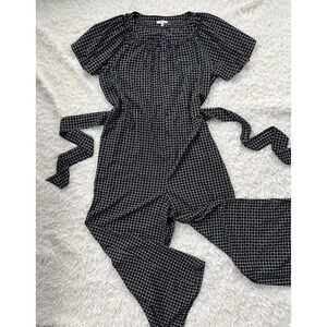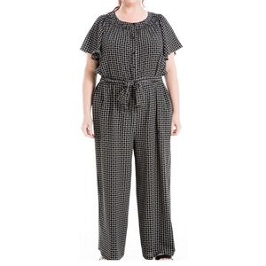 Max Studio Jumpsuit Wide Leg Tile Polka Dot Belted Career Casual Black White 3XL
