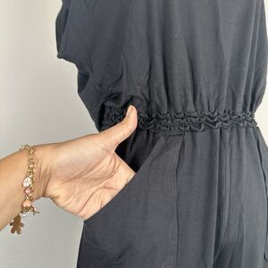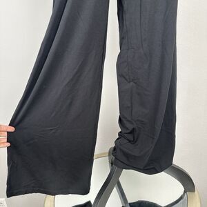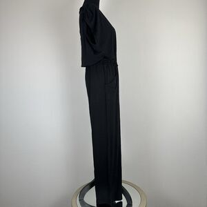Max Studio Jumpsuit Womens Small Black Stretch Straight Leg Back Cutout Casual