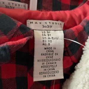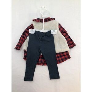 Max Studio Kids 3pcSet 5T buffalo plaid, top leggings, and fuzzy vest NWT
