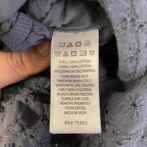 Charcoal grey eyelet romper with ruffle sleeves bow and button details snap closure in pants