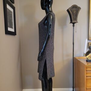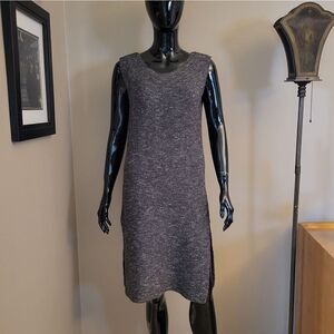 Gray tweed acrylic, cotton blend knit dress. Size Small. Unfitted sheath with scoop. neck and side slits. can be worn with a t shirt, blouse, or sleeveless.