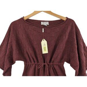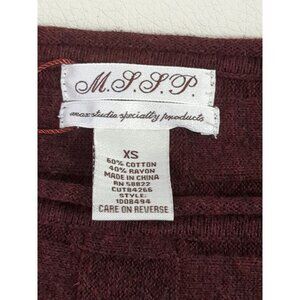 Max Studio Knit Top Womens XS Burgundy Short Sleeve Boho Work Casual