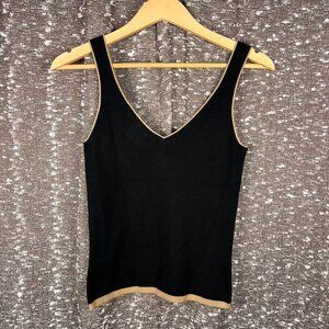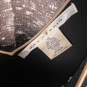 Max Studio Knit XS Black Stretch Tan Embroidered Accent Trim
