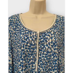 Max Studio L Top Blue White Floral Peasant Tunic Empire