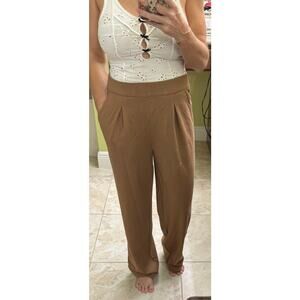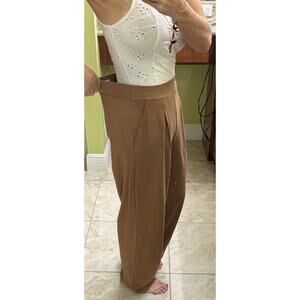 Max Studio LARGE brown pull on pants wide leg pleated with pockets