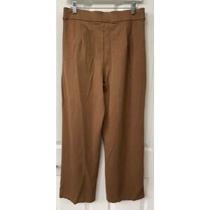 Max Studio LARGE brown pull on pants wide leg pleated with pockets 65% rayon 35% nylon spandex 5% ($59 retail)