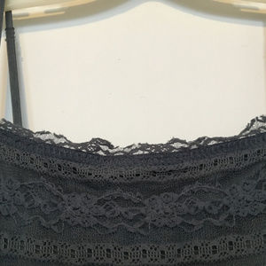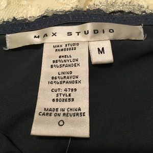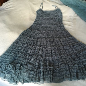 Max Studio gray lace dress with straps, size M. It is NOT floor length. I am about 5'3", and it is tea length (falls to my shins).