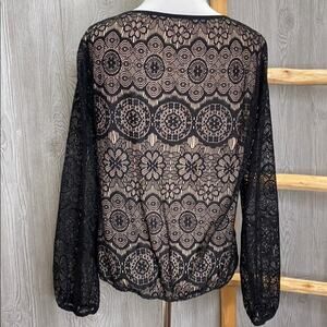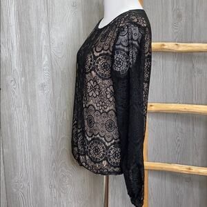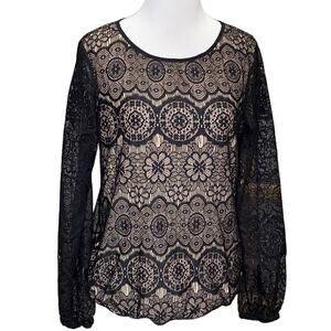 Max Studio Lace Overlay Long Sleeve Blouse Small