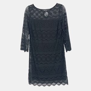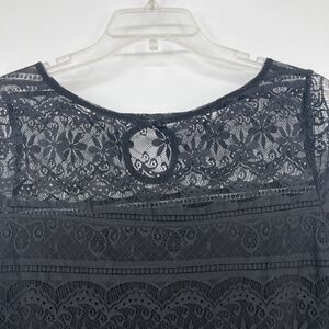Max Studio Lace Tunic Dress MEDIUM Black Floral Cocktail Whimsigoth Witchy