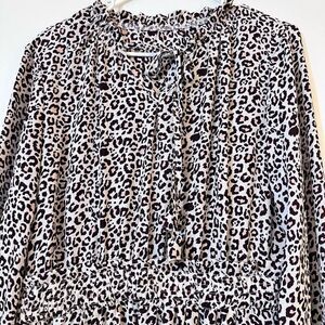 Max Studio Leopard Tie Neck Shirred Cuff Ruffle Hem Dress Multicolor Large