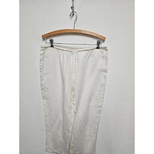 Max Studio Linen Blend White Drawstring Wide Leg Pants Size M