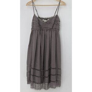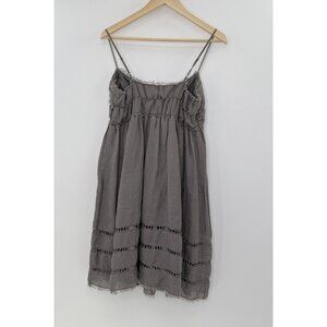 Max Studio Linen Nylon Blend Babydoll Dress Sz L Frayed Edge Boho Y2K Vibes
