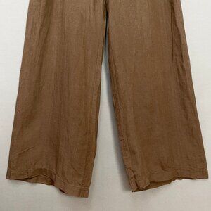 Max Studio Linen Pants Wide Leg Brown Sailor Button Front Drawstring Size Medium