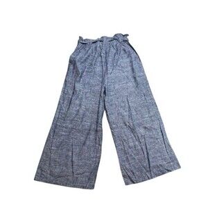 Max Studio Linen Pants Womens Size Small Paperbag Belted Waist Wide Leg Cropped