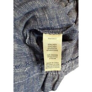 These Max Studio linen pants in size small feature a paperbag belted waist and wide leg design, making them perfect for various occasions such as workwear, casual outings, and parties. The pull-on closure and high-rise waist provide a comfortable fit, while the blue color and relaxed fit give a bohemian and beachy vibe. Machine washable and made from a linen blend fabric, these pants are ideal for the spring, summer, and fall seasons. The 24.5-inch inseam and flat front design add to the stylish and versatile nature of this wardrobe essential.