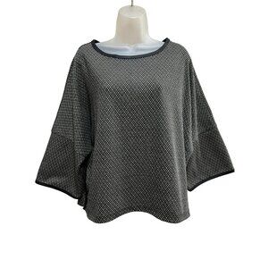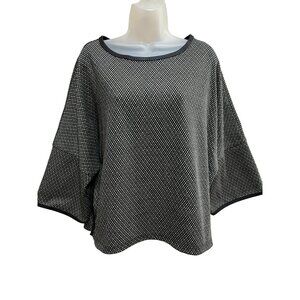 Max Studio London Black & White Diamond Patterned Poncho Sweater Top W/ 3/4 Slee
