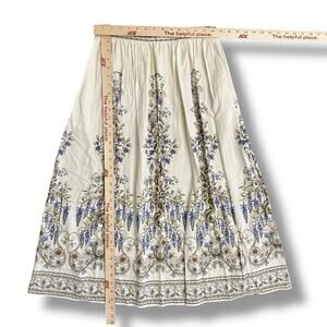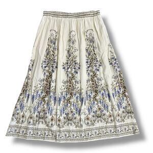 Max Studio London Floral Border Print Midi Skirt Cream Beige Blue Boho Style M