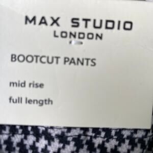 NWT Max Studio Mid Rise Boot Cut Pants with pockets in black and white houndstooth pattern.
