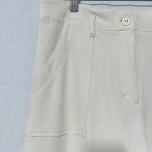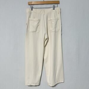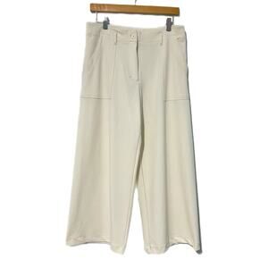 Max Studio London Wide Leg Pants Womens M Ivory High Rise Cropped Patch Pockets