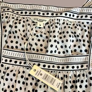 Max Studio London Women's Black/White polka dot Printed Top M NWT