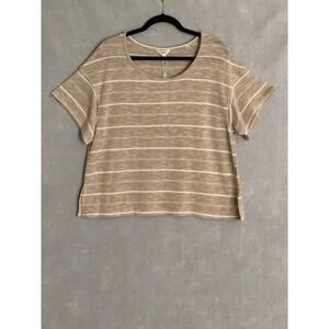 Max Studio London Women's Small Drop Shoulder Stripe Top Tan NEW