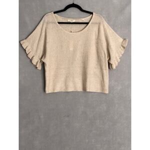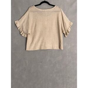 Max Studio London Women's Small Ruffle Sleeve Knit Top in Oyster NEW