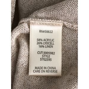 58% acrylic, 26% lyocell, 16% linen, machine wash, boat neckline, short ruffle sleeves
