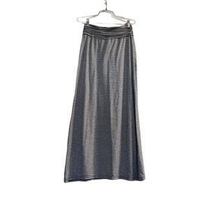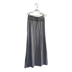 Max Studio Long Maxi skirt Striped Stretch ivory gray sz m Modest A Line