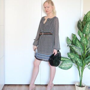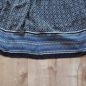 Max Studio offers fashionable, head-turning styles. Perfect to wear on a casual day out or to pack with you on your next vacation. Allover Morocco style print in black, white, and blue color. Gathered waist, light, and flowy.