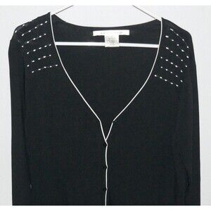 Max Studio Long Sleeves Button Front Black White Cardigan Sweater Size L