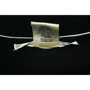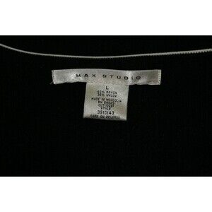 Max Studio offers a timeless addition to your wardrobe with this elegant black cardigan sweater with a white stitching design on the shoulders and wrists. The sweater is tailored to a regular fit in a size large and is equipped with buttons for a touch of sophistication. This measures approx. 19.5" from pit to pit and 26.5" long with 25.25" long sleeves. Whether you're dressing for a casual outing or a business meeting, this cardigan maintains a polished look with its thin knit style and minimalistic accents.