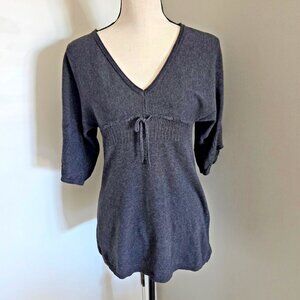 Max Studio Long Sweater Womens SP Small Petite Gray Short Sleeve Top V-Neck