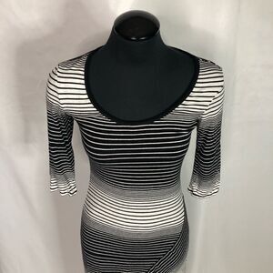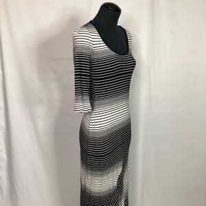 Black & White Stretch Max Studio Stripe Long Sleeve Maxi Dress.