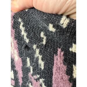 Elevate your wardrobe with this striking Max Studio longline cardigan, featuring an intricate paisley and floral-inspired design in black, cream, and mauve tones. Perfect for layering, this open-front sweater adds a bohemian touch to any outfit. Made from a soft, cozy knit, it’s ideal for cool-weather styling. Please note minor flaws, such as slight pilling or wear, which do not affect the overall aesthetic or wearability.