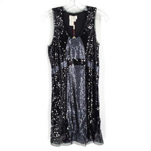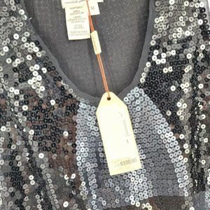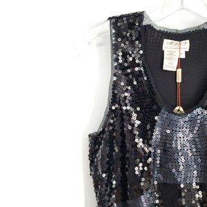 Max Studio MSSP Sequins Dress M Black Grey Sleeveless Tank Mesh Sheath Shiny New
