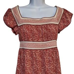 Max Studio MSSP Women's Pullover Empire Waist Top Size S Red Ivory Square Neck