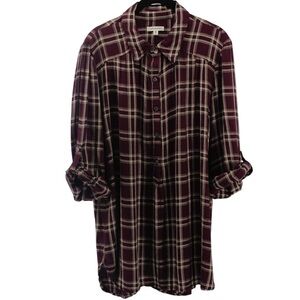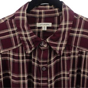 Max Studio Maroon and Tan Plaid Jersey Button Down Fall Pumpkin Patch Size XL