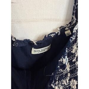 Max Studio Maxi Dress Smocked Ruffled Blue White Print Est. Size SM Preppy Cute