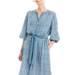 A bold pattern adds eye-catching appeal to a maxi dress finished with a waist tie.