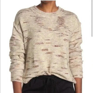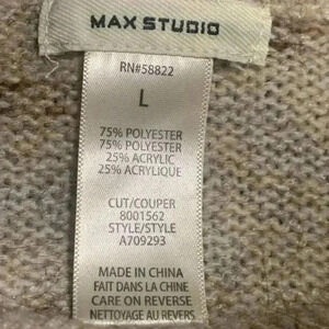 Max Studio Melange Long Sleeve Drop Shoulder Side-slit Cream/Oatmeal Sweater L
