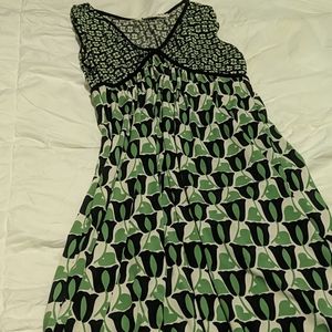 Green, Black, and Tan Flower Detail Dress - Polyester Spandex Mix.