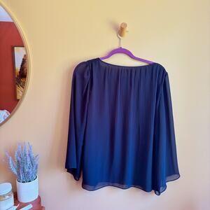 tags: max studio, mini pleat blouse, navy blouse, size large, long sleeve blouse, flowy top, office wear, elegant blouse, classic style, women’s top, chic blouse, wardrobe essential