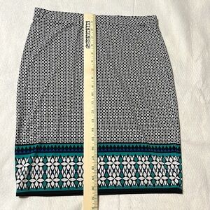 This skirt is pre-owned and in excellent condition with no rips, stains, tears, or holes. The geometric design and stretchy fabric provide both style and comfort, perfect for casual or dressy occasions.